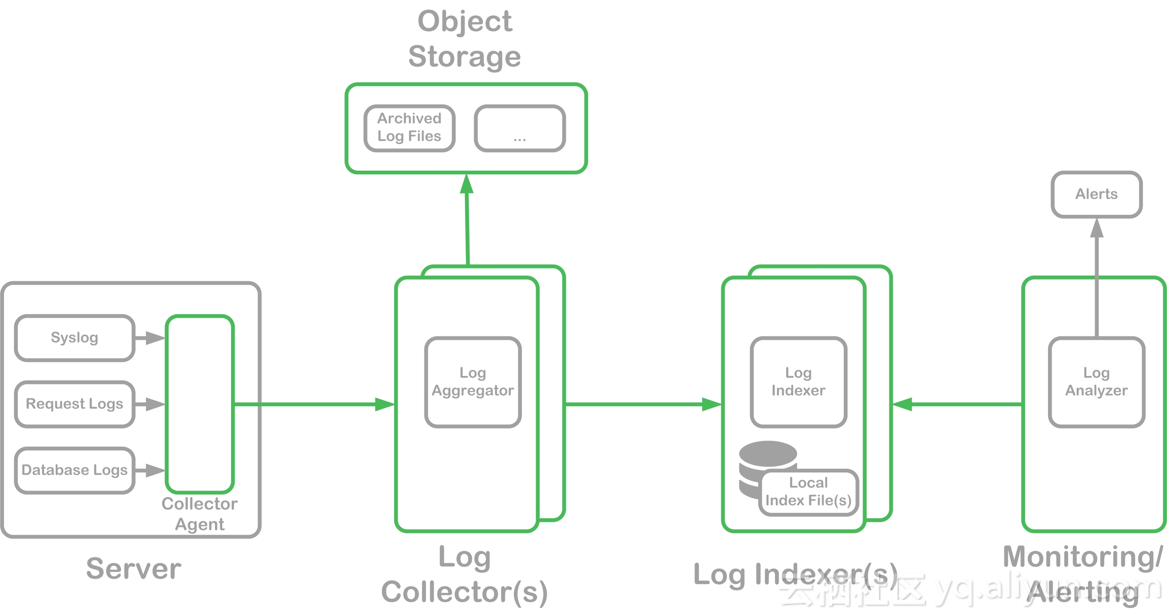 支持多种后端存储:elasticsearch, 阿里云日志服务, graylog2…