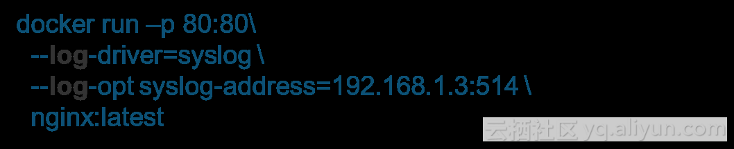 第一种方式是在Daemon上配置,对所有的容器生效。你配置之后,所有的容器启动,如果没有额外的其他配制,默认情况下就会把所有容器标准输出全部都发送给Syslog服务,这样就可以在这个Syslog服务上面收集这台机器上的所有容器的标准输出;