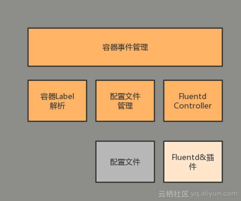 最上层是容器事件管理,这一块跟Docker进行交互,它会感知Docker的创建容器,然后做出相应的生成配置或者清理配置上的事情;解析容器label跟容器配置,当你创建一个新容器之后,就会用这个模块拿到新容器的配置,然后生成对应的配置文件;FluentdController主要是用来维护对应进程,包括控制什么时候加载新配置,然后检测一些健康状态等等;再下面就是Fluentd的一些插件,如果你需要增加一些日志的后端,就可以自己实现一些插件,放在这个里面,然后再生成跟对应的插件相关的一些配置。